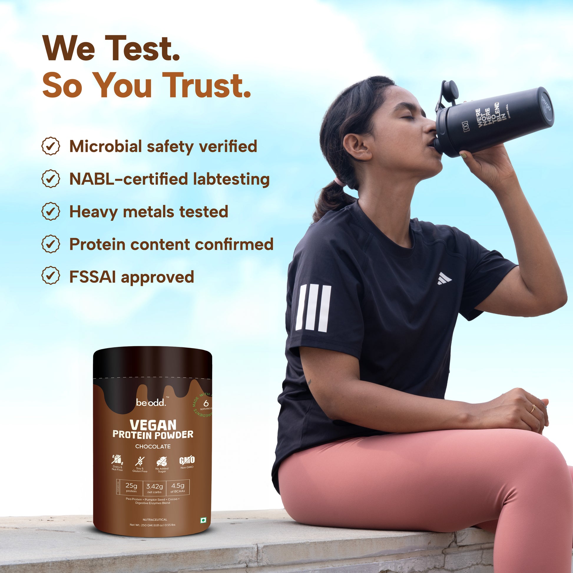 Be Odd provides 25g protein + 4.5g BCAAs per scoop, which helps repair muscles faster after activity. Recovery speed depends on your diet and activity level, but compared to regular plant proteins, our enzyme blend supports quicker absorption and better recovery.