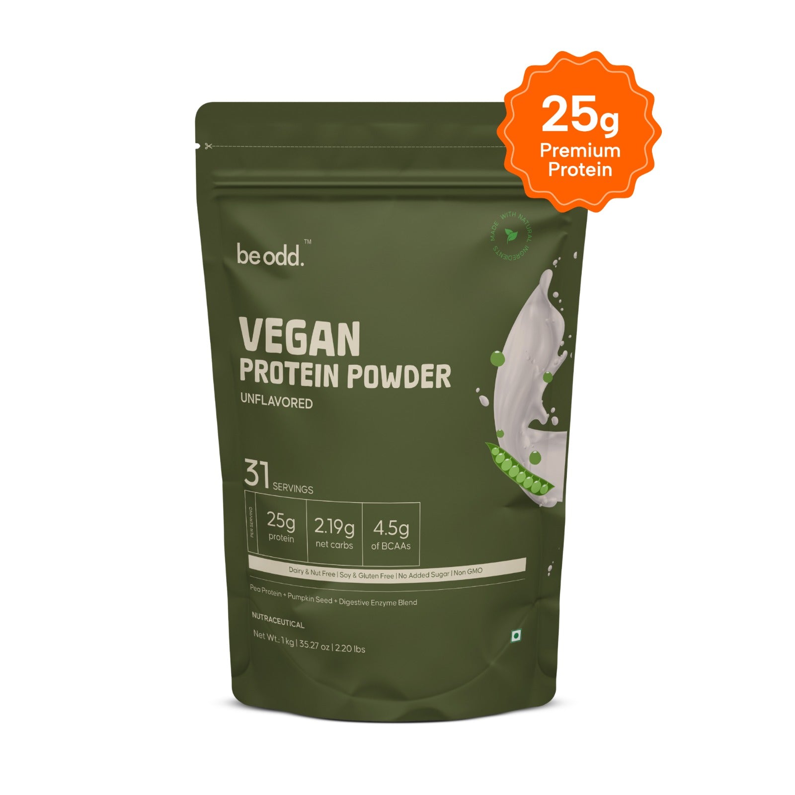 Be Odd Vegan Protein Powder | Unflavoured | Quality Pea Protein Isolate | Sugar-Free, Easy to Digest |100% Natural Plant Protein | For Men & Women | 25gm per serving