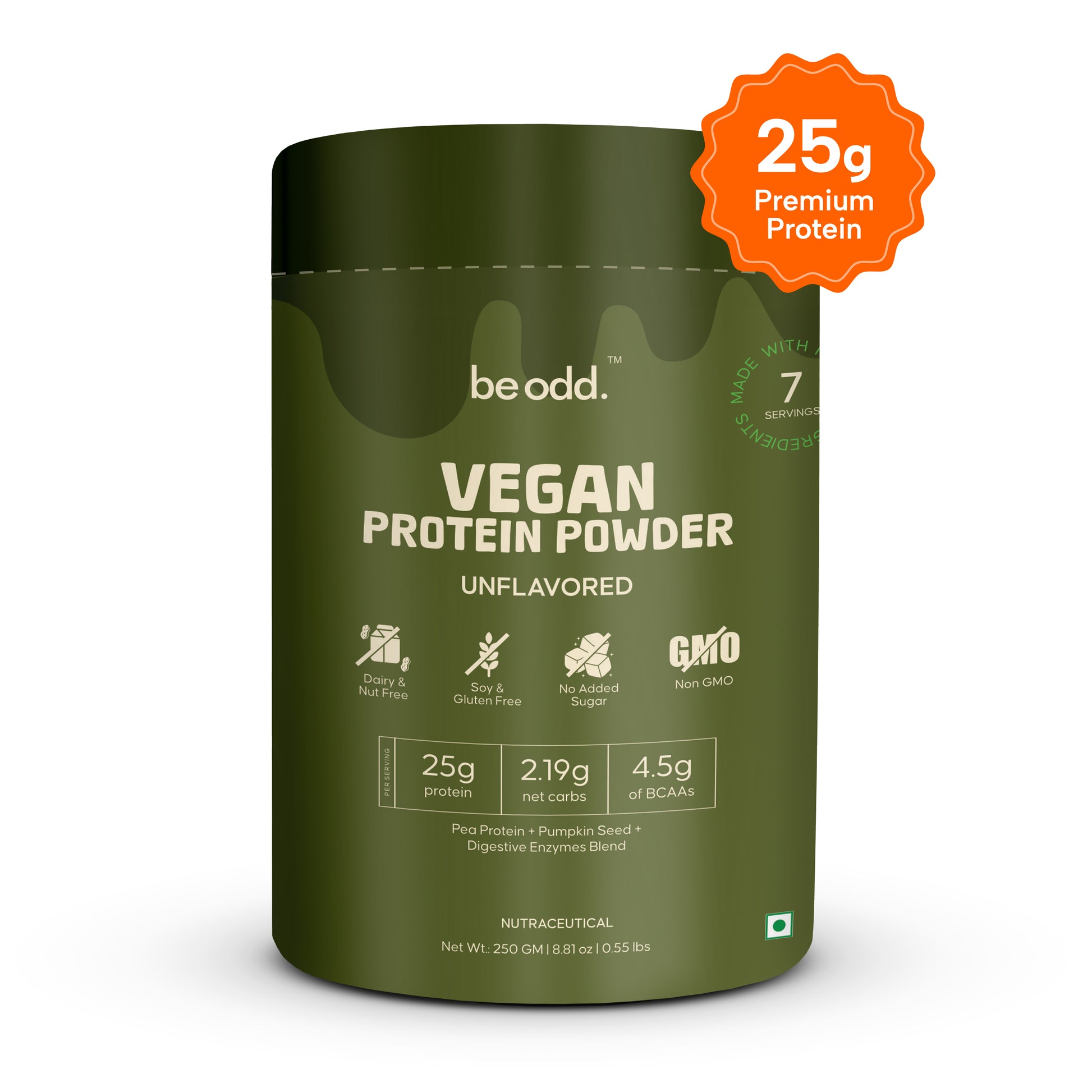 Be Odd Vegan Protein Powder | Unflavoured | Quality Pea Protein Isolate | Sugar-Free, Easy to Digest |100% Natural Plant Protein | For Men & Women | 25gm per serving